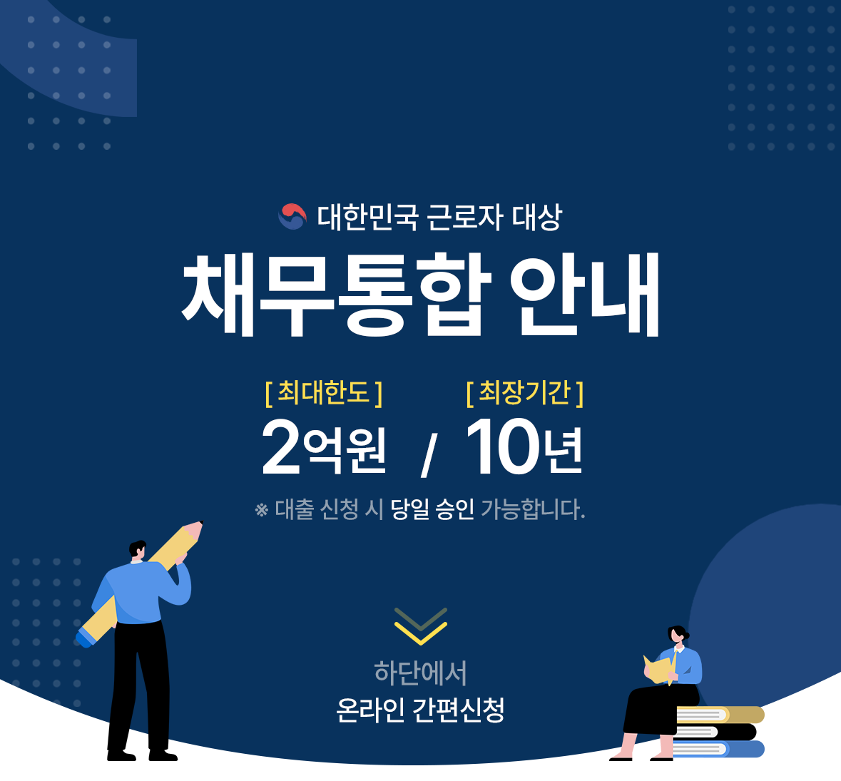 대출금리 : 최대 연 20%이내, 신용도에 따라 차등적용 단 2021년 7월7일부터 신규체결, 갱신, 연장되는 계약에 한함|본 상품은 담보대출과 신용대출 상품입니다.